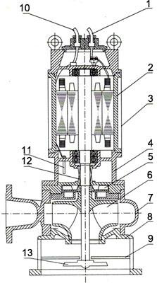 三利·JYWQ型自動攪勻式排污泵結構與特點: