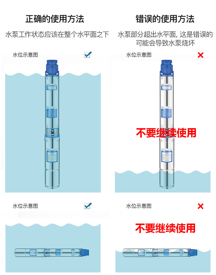 QJ型深井潛水電泵可在下列條件下連續運行使用: