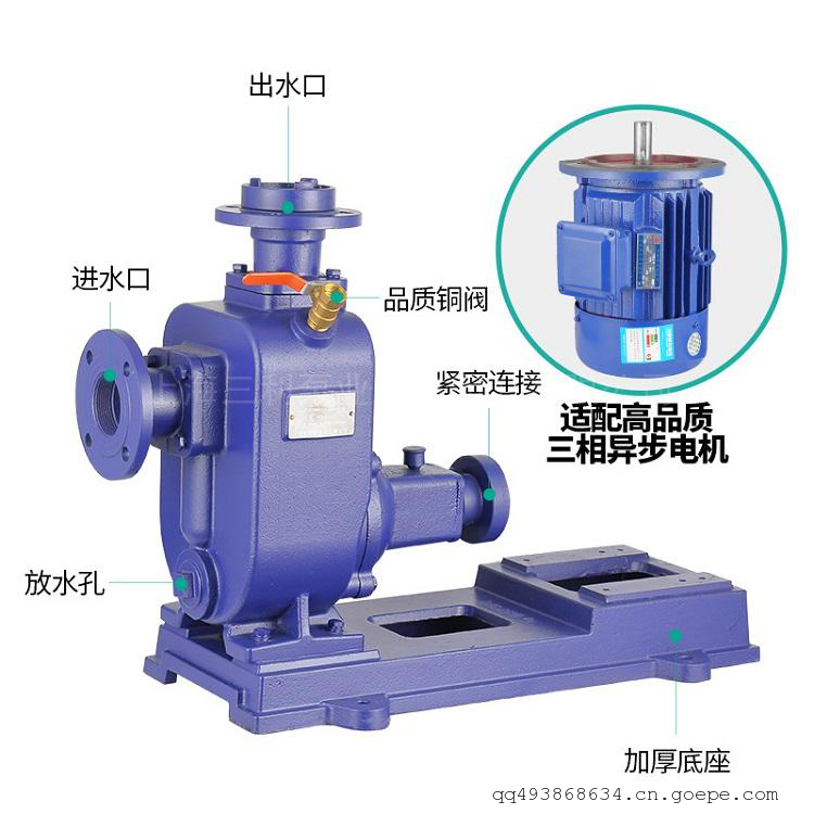 4、ZW型臥式無堵塞自吸泵由泵體、葉輪、軸、機架、電機等部件組成,移動方便。