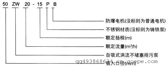 三利·ZW型臥式無堵塞自吸泵型號意義: