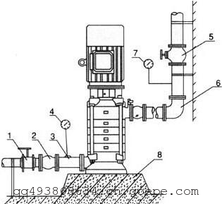 8、為了維護和使用方便,在泵的進口管路上安裝一只球閥和在泵出口附近安裝一只壓力表,并在壓力表前面安裝一只自位閥(防水錘),以泵在額定范圍內運行,泵的正常運行和使用壽命。