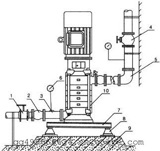 5 | 閘閥 | 6 | 止回閥 | 7 | 壓力表 | 8 | 水泥臺座 | 6 | 泵 | 7 | 聯接板 | 8 | JGD型隔振器 | 9 | 水泥臺座 | 10 | 泵 |